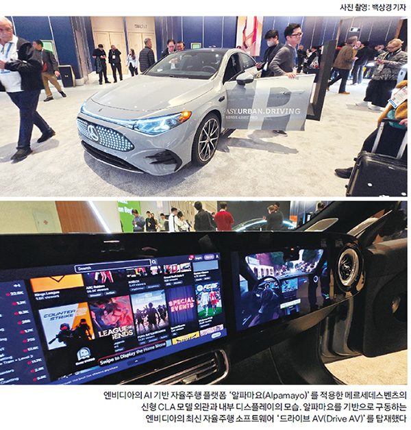 현장에서 특히 뜨거운 관심을 받은 것은 피지컬 AI 관련 기술, 그중에서도 이번에 새롭게 공개한 AI 기반 자율주행 플랫폼 알파마요(Alpamayo)였다. 알파마요의 시연 영상이 나오는 모니터 앞은 발길이 끊이지 않았다. 시연 영상 속 알파마요의 판단 능력은 놀라웠다. 주어진 환경을 맥락으로 이해하고 주변 차량이나 그 밖의 변수들을 종합적으로 고려하면서 주행하는 모습을 실시간으로 보여줬다. 도로 상황을 보는 것에 그치지 않고 실제 운전자의 사고 흐름에 가깝게 현재 상황을 생각해 판단을 내리는 VLA(Vision-Language-Action) 모델이다.