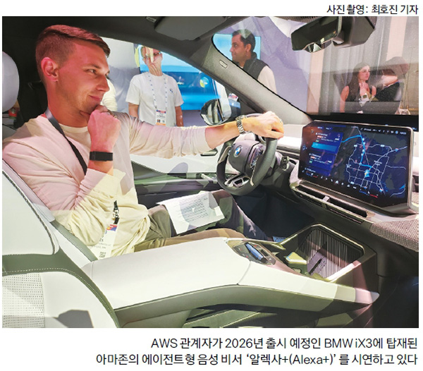 아마존 ‘자동차 산업 전체’를 삼키려는 거대 생태계아마존 부스는 자동차 산업의 가치사슬 전 구간을 아마존에 묶는 ‘포괄형 플랫폼 전략’을 과시하는 무대에 가까웠다. 자동차 제조, 운행, 구매 등을 하나의 아마존 생태계에 포괄하는 설계도를 펼쳐 보이는 자리였다. 아마존 부스 현장에서 만난 웨슬리 루카스 아마존웹서비스(AWS) 파트너 마케팅 매니저는 “아마존의 모든 사업부가 자동차 산업을 위해 무엇을 할 수 있는지 보여주려 한다”고 강조했다.