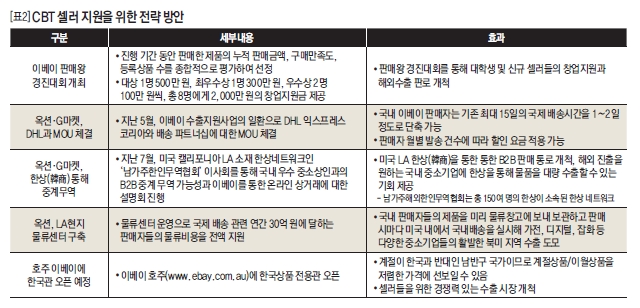 이베이는 2009년부터 한국 시장에서 시야를 구매자에서 판매자로, 내수에서 글로벌 시장과의 연계로 점차 넓혀나가기 시작했다. 한국산 상품을 온라인을 통해 수출하는 이른바 ‘국가간교역(CBT·Cross Border Trade)’ 사업을 본격화한 것이다. 한국 오픈마켓의 폭발력과 이베이의 글로벌 영향력을 연계해 새로운 사업기회를 창출하기 위해서였다. 이베이를 통한 한국의 온라인 수출 규모는 2008년 170억 원이었다. 이베이가 CBT 사업에 나선 2009년엔 400억 원으로 늘었고 2010년에는 1000억 원으로 증가했다. 올해는 1500억 원 규모를 내다보고 있다. 이베이는 온라인 수출의 불모지로 불리는 한국 시장에서 생소한 CBT 사업을 어떻게 키웠을까. 이베이코리아의 한국 CBT 성장전략을 분석했다.