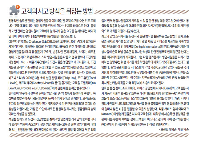 이 글은 <하버드비즈니스리뷰(HBR)> 2012년 7∼8월 호에 실린 글로벌 컨설팅 기업 CEB 상무이사 브렌트 애덤슨(Brent Adamson), 전무이사 매튜 딕슨(Matthew Dixon), 연구이사 니컬러스 토먼(Nicholas Toman)의 글 ‘The End of Solution Sales’를 전문 번역한 것입니다.