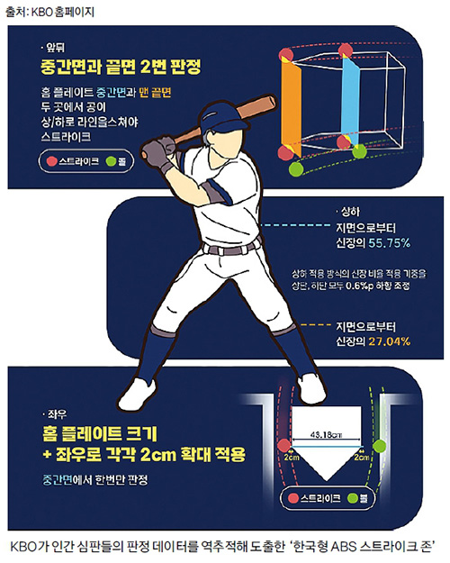 한편 KBO는 MLB를 벤치마킹하는 것에서 나아가 한국 프로야구가 직면한 문제에 더 빠르게 대응하기 위해 선제적인 혁신을 단행하기도 했다. 바로 1군 리그 전면 ‘자동 투구 판정 시스템(Automated Ball-Strike System·ABS)’ 도입이다. MLB조차 망설이던 이 기술을 KBO가 세계 최초로 도입하게 된 배경에는 판정의 정확성과 공정성을 원하는 팬들의 요구가 자리하고 있었다. 야구팬들 사이에서는 심판 판정에 대한 끊임없는 불신이 제기돼왔다. 경기 종료 후 데이터를 분석해 심판별 판정 성향을 비교하는 웹사이트까지 생겨날 정도였다.