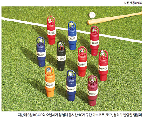 KBOP는 과거 한 업체와 협업해 구단 선글라스를 출시했다. 렌즈 전면을 촘촘한 구멍(Mesh) 형태로 만들고 그 위에 구단 로고를 입힌 선글라스였다. 당시로서는 획기적인 시도였지만 팬들의 반응은 냉담했다. 이를 통해 상품 그 자체의 심미성과 실용성이 담보되지 않는다면 아무리 애정하는 구단의 로고가 박혀 있어도 팬들은 외면한다는 사실을 깨달았다.이후 KBOP는 상품력 강화에 주력했다. 구단 로고 플레이에서 벗어나 디테일한 디자인 요소에 신경 쓰며 상품 완성도를 높이는 데 집중했다. 라이프스타일 브랜드 오덴세(Odense)와의 협업으로 제작한 텀블러가 좋은 예다. KBOP와 오덴세는 구단별 고유 색깔을 텀블러에 세련되게 구현하는 데 집중했다. 롯데 자이언츠의 경우 일반적인 빨간색이 아닌 구단 특유의 고급스러운 붉은 색감을 살려내려 애썼다. 화룡점정은 빨대 마개였다. 빨대 마개를 각 구단의 마스코트 모양으로 정교하게 제작해 디자인 포인트로 삼았다. 야구팬들이 제품을 볼 때 단순히 ‘로고 박힌 텀블러’가 아닌 ‘디자인이 예쁜데 구단 감성까지 담긴 텀블러’로 느끼게 만든 것이다.