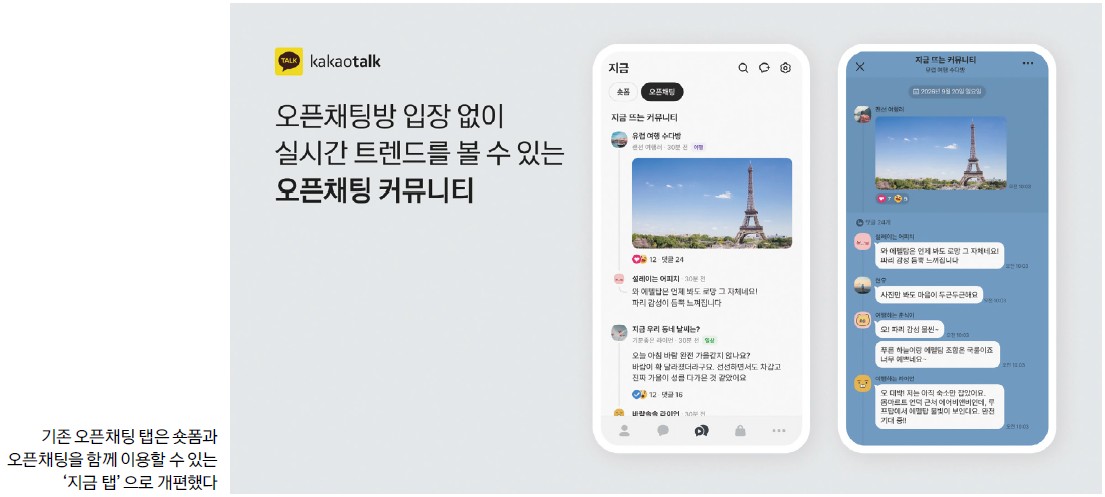 이와 함께 기존의 오픈채팅탭은 숏폼과 오픈채팅을 통합적으로 활용할 수 있는 ‘지금탭’으로 전환된다. 스크롤을 통해 다양한 숏폼 영상을 감상하다가 친구에게 즉시 공유할 수 있다.