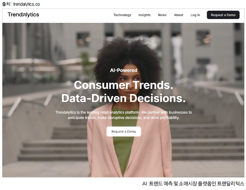 이와 달리 뉴욕 기반의 트렌달리틱스(Trendalytics)는 AI 트렌드 예측 및 소매 시장 분석 플랫폼으로 패션, 뷰티, 라이프스타일 브랜드들이 직관 대신 데이터에 기반한 의사결정을 내릴 수 있도록 돕는다. 이 기업은 방대한 디지털 데이터를 분석해 트렌드의 확산과 소멸 과정을 정량적으로 파악한다. 이 플랫폼은 소셜미디어 이미지와 언급량, 검색 데이터, 이커머스 및 리테일 활동 데이터를 종합적으로 분석해 특정 스타일, 아이템, 컬러, 소재가 어느 시점에서 성장 국면에 진입했는지 혹은 이미 정점을 지나 하락 국면에 접어들었는지를 수치와 지표로 보여준다.
