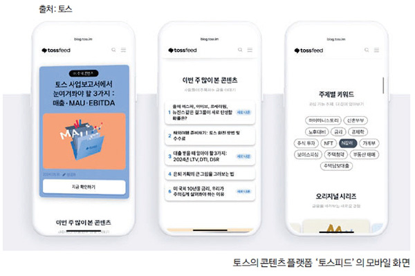 이후에는 ‘누구나 금융을 쉽고 간편하게 누릴 수 있게 하겠다’는 토스의 비전에 따라 금융 지식을 전달하는 콘텐츠도 선보였고 현재는 월 150만 조회수를 기록하는 콘텐츠 플랫폼으로 거듭났다. 실용적이거나 전문적인 금융 지식만 전달하는 것은 아니다. ‘2025 토스픽: 생존의 질문들’ 시리즈에는 한동일 교수, 김영민 교수, 천선란 작가, 황석희 번역가 등이 필진으로 참여해 존엄한 삶을 위해 필요한 조건을 경제적 시선에서 조망했고 100만 조회수를 달성했다.