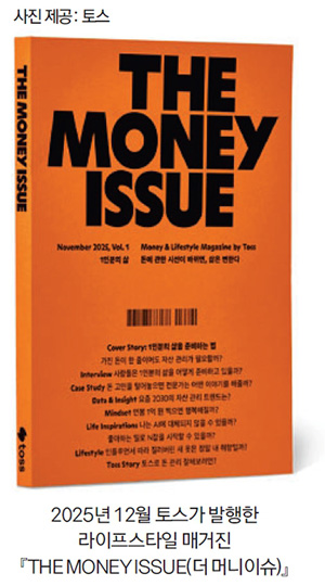 이처럼 전략에 따라 매체와 콘텐츠도 변화해야 한다. 토스가 서비스 10주년을 맞이하며 금융을 넘어 일상의 ‘슈퍼앱’으로 거듭나겠다는 새로운 비전을 발표한 2025년에는 매거진 『THE MONEY ISSUE(더 머니이슈)』(2025)를 선보였다. ‘1인분의 삶’을 주제로 한 사람의 몫을 해내며 살아가는 것에 관한 인터뷰, 칼럼, 케이스스터디, 에세이, 단편소설 등 다양한 포맷의 콘텐츠를 담았다. 『THE MONEY BOOK』이 돈에 관한 지식을 알려주는 실용서였다면 『THE MONEY ISSUE』는 돈에 관한 태도를 짚는 라이프스타일 매거진이다. 매 호 다른 토픽을 선정하며 돈에 관한 다양한 주제의 질문을 던지기에는 단행본보다 매거진의 형식이 적합할 것이라고 생각했다. 『THE MONEY BOOK』이 퇴직금과 퇴직연금의 차이를 알려준다면 『THE MONEY ISSUE』는 “가진 돈이 한 줌이어도 자산 관리가 필요할까?” “연봉 1억 원이면 행복해질까?”라는 질문을 던지는 식이다. 부록으로는 매일매일 들여다볼 수 있는 신년 달력을 준비했다. 연말이면 어르신들은 은행에 줄을 서면서까지 달력을 받는다. 은행에서 주는 달력을 집에 걸어 놓으면 돈이 들어온다는 이야기 때문이다. 마찬가지로 달력을 전하면서 토스가 사람들에게 행운과 풍요로운 마음을 나누는 브랜드가 되고 싶었다.