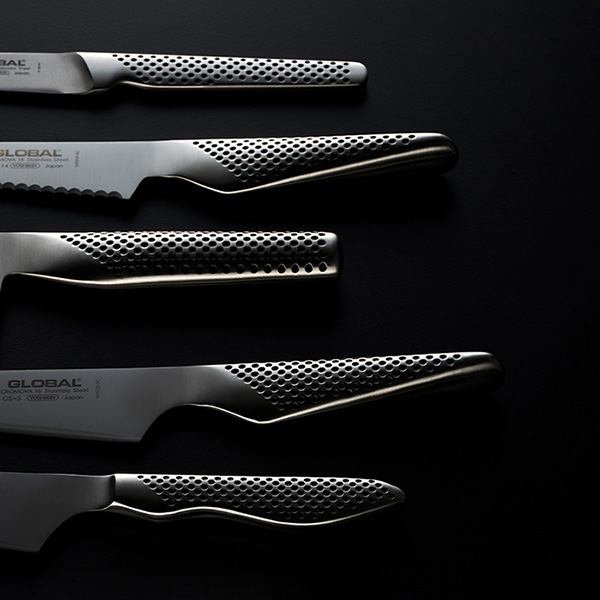 글로벌 나이프는 많은 사람들이 ‘인생 칼’로 꼽는 일본 브랜드입니다. 약 40년 동안 칼을 만들어온 글로벌 나이프는 세계 최초로 일체형 스테인리스 스틸 나이프를 선보인 브랜드로 알려져 있습니다. 통상적인 칼이 목제 손잡이를 사용한다면, 글로벌 나이프의 칼은 조금 더 개성적인 디자인이에요.