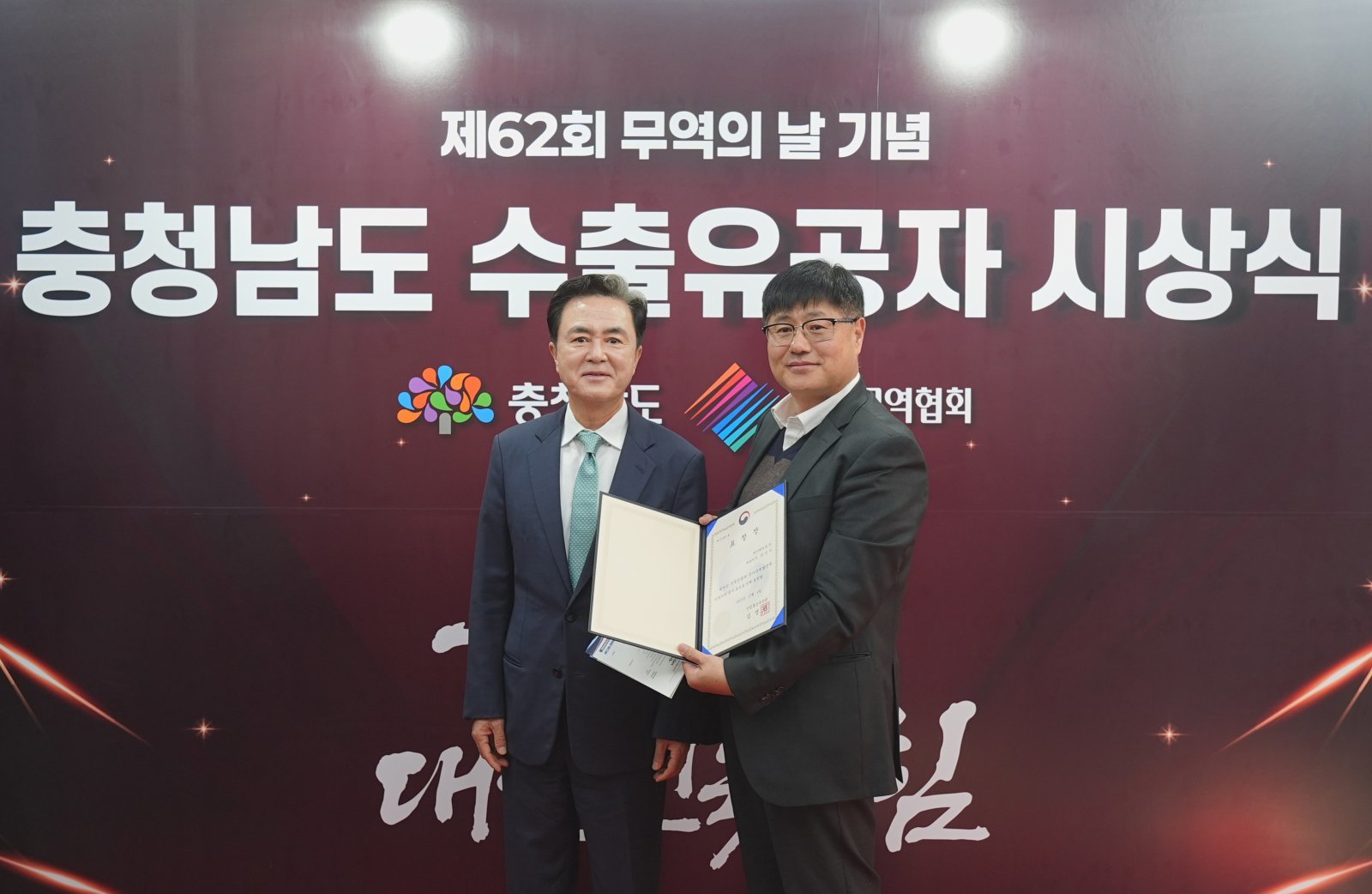 하이쎄미코는 제62회 무역의 날 기념 산업통상부 장관 표창을 수상했다. 김태흠 충남도지사(왼쪽)와 한민석 하이쎄미코 대표. 하이쎄미코 제공