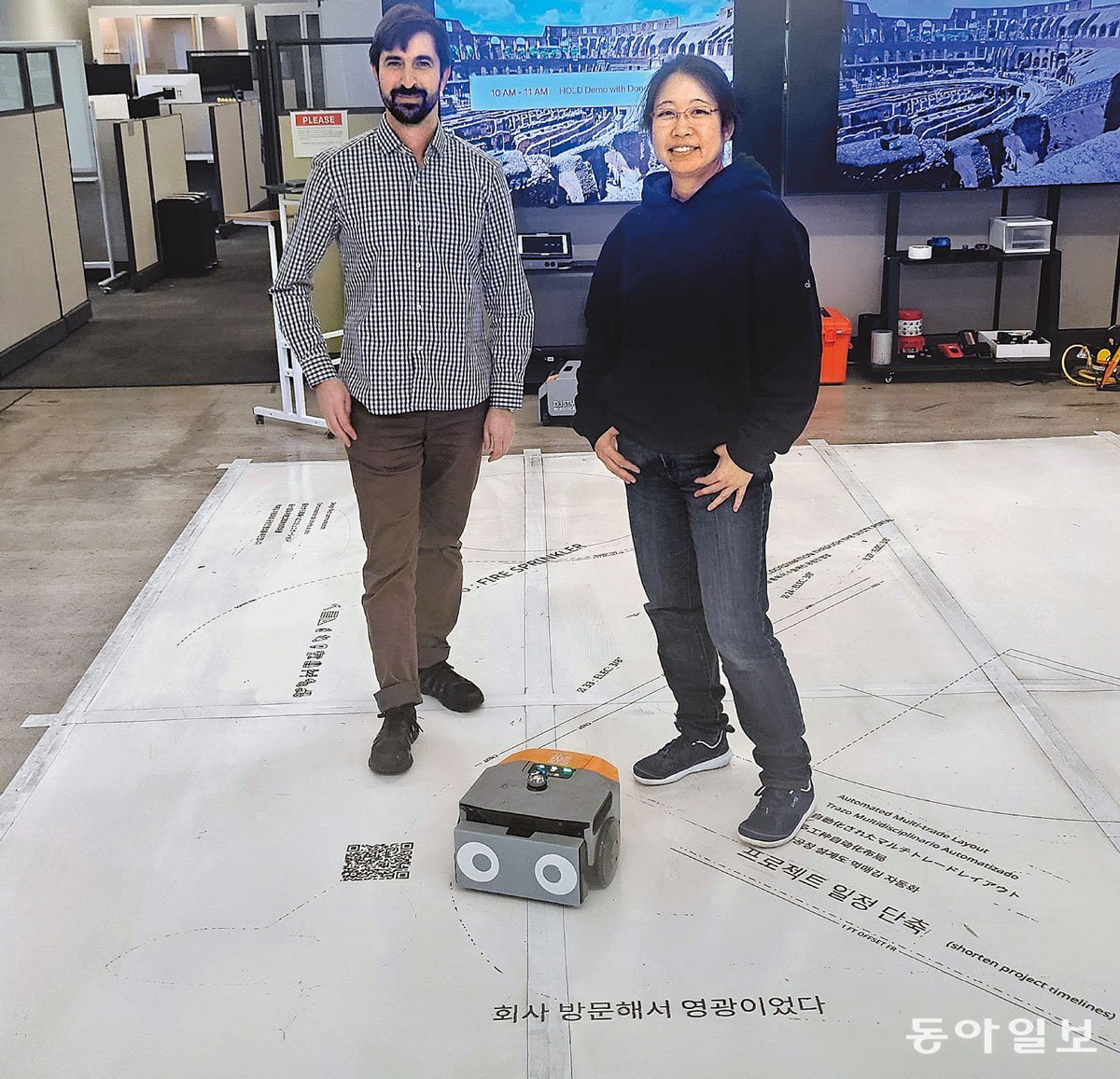 지난해 12월 16일(현지 시간) 미국 캘리포니아주 실리콘밸리 마운틴뷰에 있는 로봇 스타트업 ‘더스티 로보틱스’. 이곳에서는 청소기처럼 생긴 작은 로봇이 흰 바닥 위를 분주히 누비고 있었다. 로봇이 지나간 자리 바닥에는 건물의 외형, 배관 위치 등이 담긴 설계도가 그려졌고 그 위로 영어, 스페인어, 한국어 등 다양한 언어로 된 시공 안내문이 새겨졌다. 다양한 국적의 현장 작업자들은 언어 장벽과 상관없이 일을 할 수 있었다.