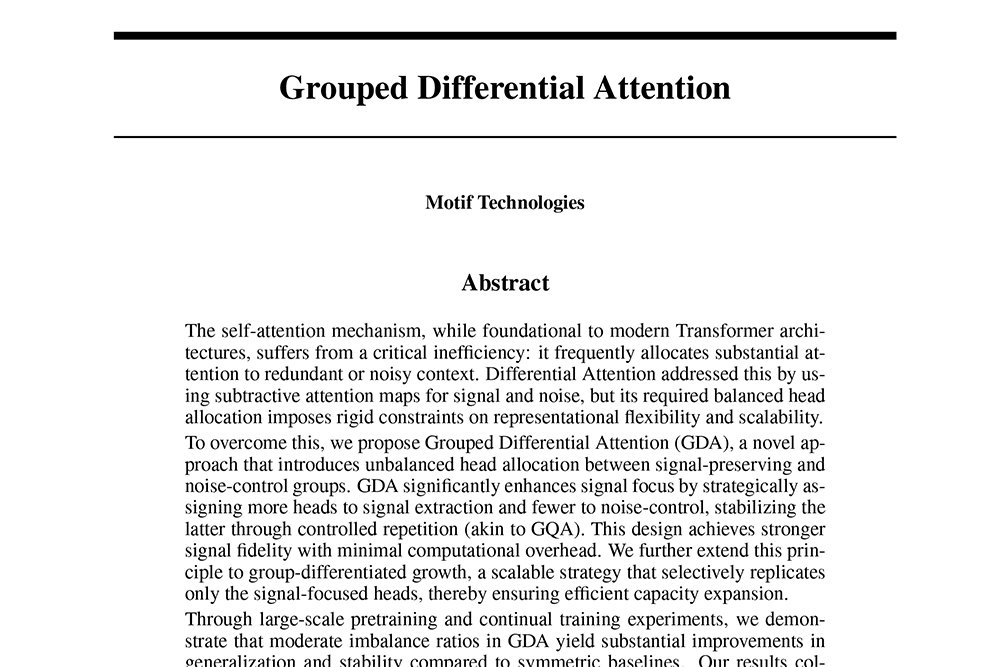 모티프테크놀로지스가 발표한 그룹별 차등 어텐션 관련 논문, 파운데이션 모델을 보다 효율적으로 동작하게끔 하는 기반 기술을 담고 있다 / 출처=모티프테크놀로지스