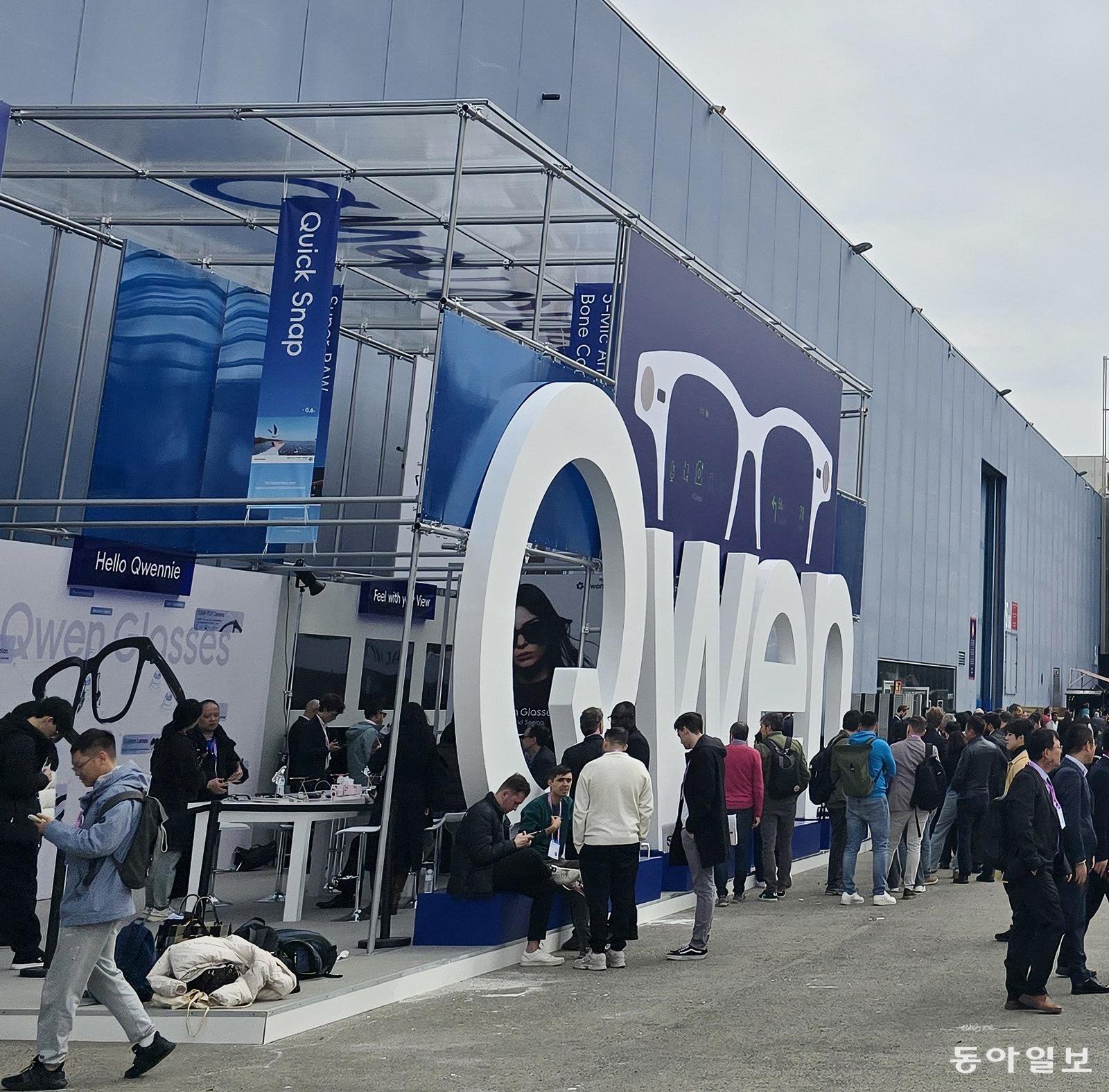 3일(현지 시간) 스페인 바르셀로나에서 열리고 있는 ‘모바일월드콩그레스 2026(MWC26)’에서 큐웬의 스마트글라스를 체험해 보기 위한 줄이 길게 늘어서 있다. 바르셀로나=김재형 기자 monami@donga.com
