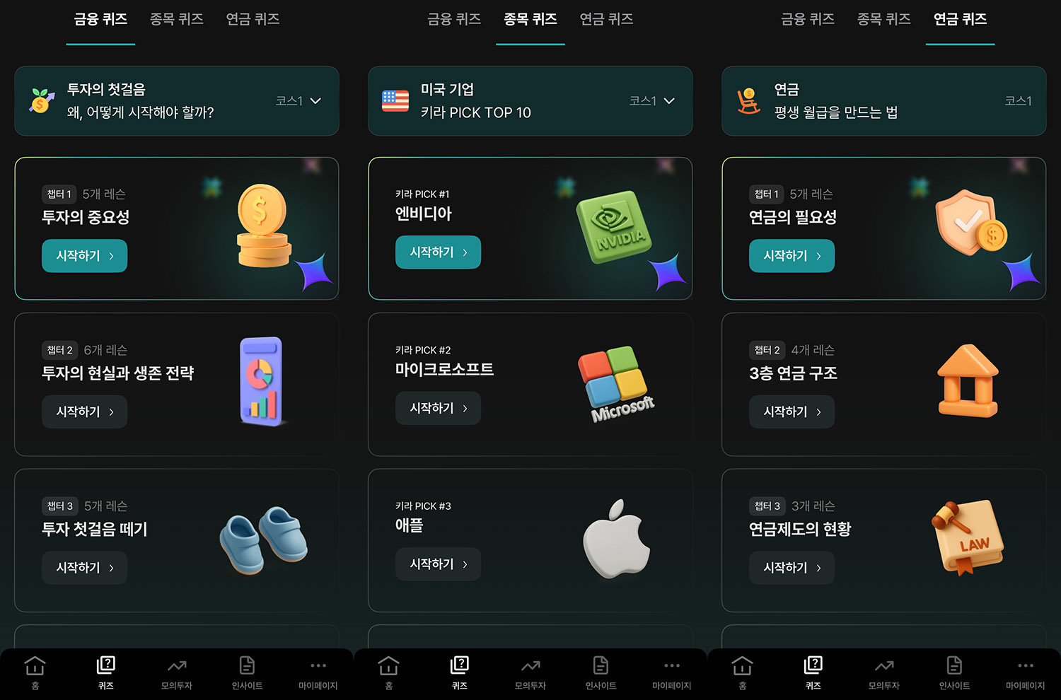 이어 퀴즈를 통해 얻은 지식을 실제 시장 데이터와 연동된 가상 환경(모의투자)에서 즉시 적용 가능하다. 안전한 환경에서 복잡한 금융 상품의 원리를 체험함으로써 이론과 실천 사이의 괴리를 해결하는 방식이다.