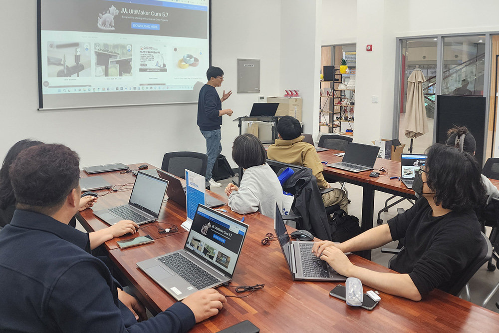 김현석 대표가 도봉 메이커스쿨에서 3D 프린팅 관련 교육을 진행 중이다 / 출처=도봉메이커스쿨