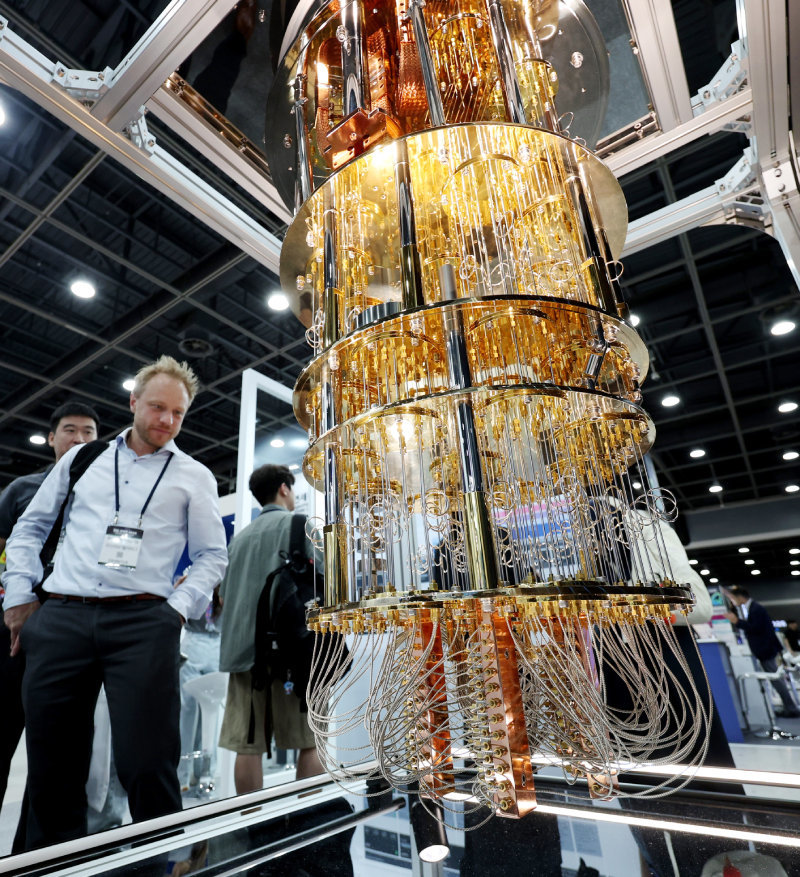 Visitors are viewing IBM's 'Quantum System One' quantum computer model at the 'Quantum Korea 2025' event held at the aT Center in Seocho-gu, Seoul, on June 24. Newsis