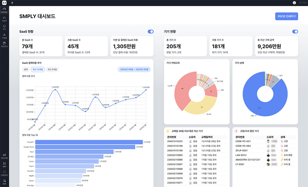 SMPLY implementation can proceed in as little as one week. Lee Ji-hoon stated, “We meet directly with client companies to introduce the service. Based on data that can be quickly set up initially, we conduct a one-week trial implementation, during which we also review solution costs. After about two weeks of use, the use is confirmed, and a contract is signed. Tangible assets can be entered directly, and we also offer a service to conduct on-site inspections to build data.”