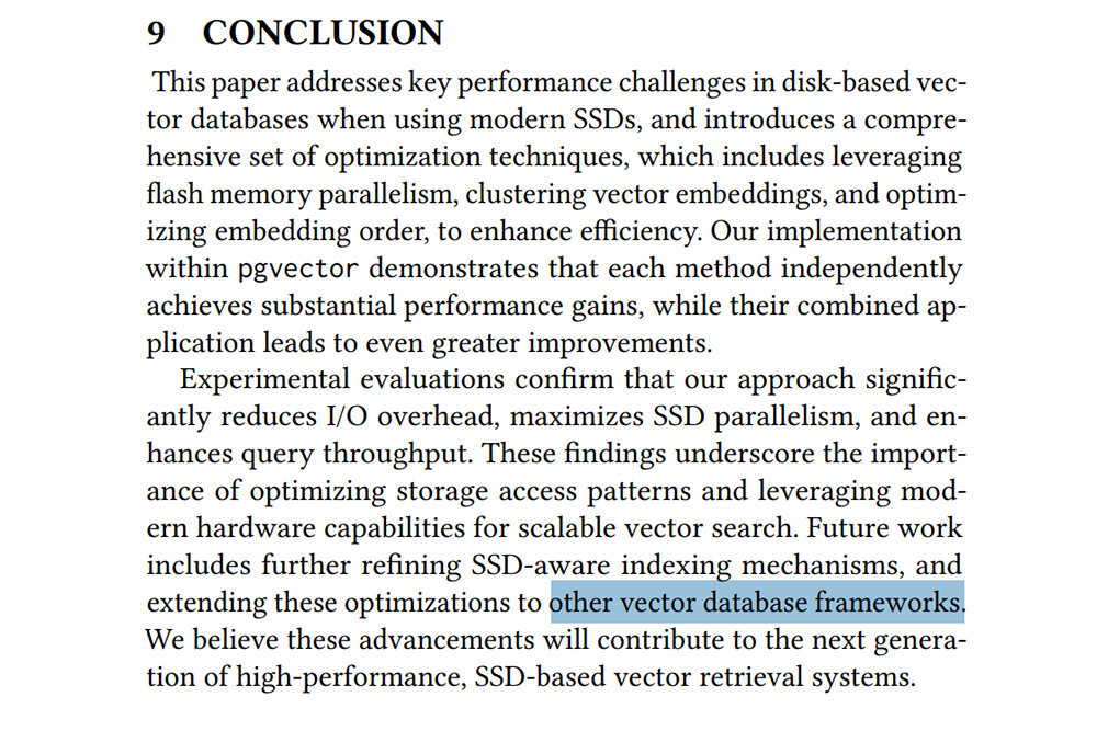 The newly released paper, "Turbocharging Vector Databases using Modern SSDs," is a paper that presents the flow of processing vector data using SSDs, without mentioning VDPU architecture and detailed technology.