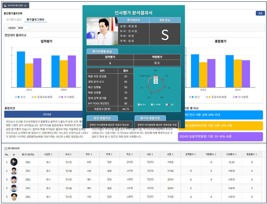 Additionally, one of the features highly valued by our customers is the 'Evaluation Progress Management' feature. It provides an intuitive screen of progress status and progress rate according to the achievement details (figures) of each evaluation item. This allows for easy management of goal achievement indicators and proactive response to various issues.
