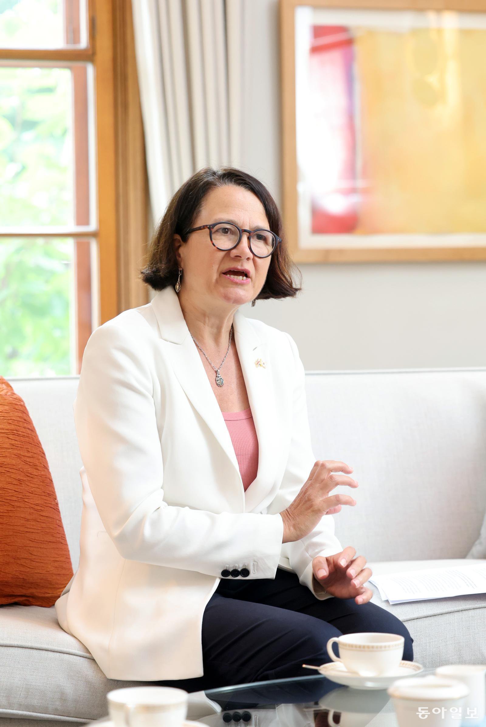 Catherine West, UK Minister for the Indo-Pacific at the Foreign, Commonwealth & Development Office (Parliamentary Under-Secretary), is interviewed by the Dong-A Ilbo at the British Embassy in Seoul on the 19th. Minister West emphasized the importance of strengthening economic and security cooperation between the two countries, stating, “Continued cooperation with Korea is one of the UK's top priorities.” Photo by Jang Seung-yoon, tomato99@donga.com