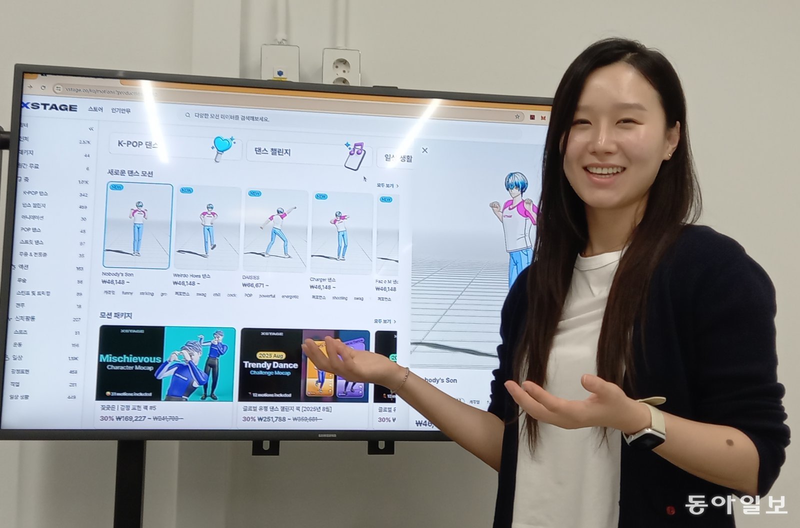 Yoon Hye-rin, CEO of Danstruct, explains the process of digital production and distribution of K-pop dance in front of the motion data distribution platform XSTAGE screen. Reporter Jin-seok Heo jameshur@donga.com