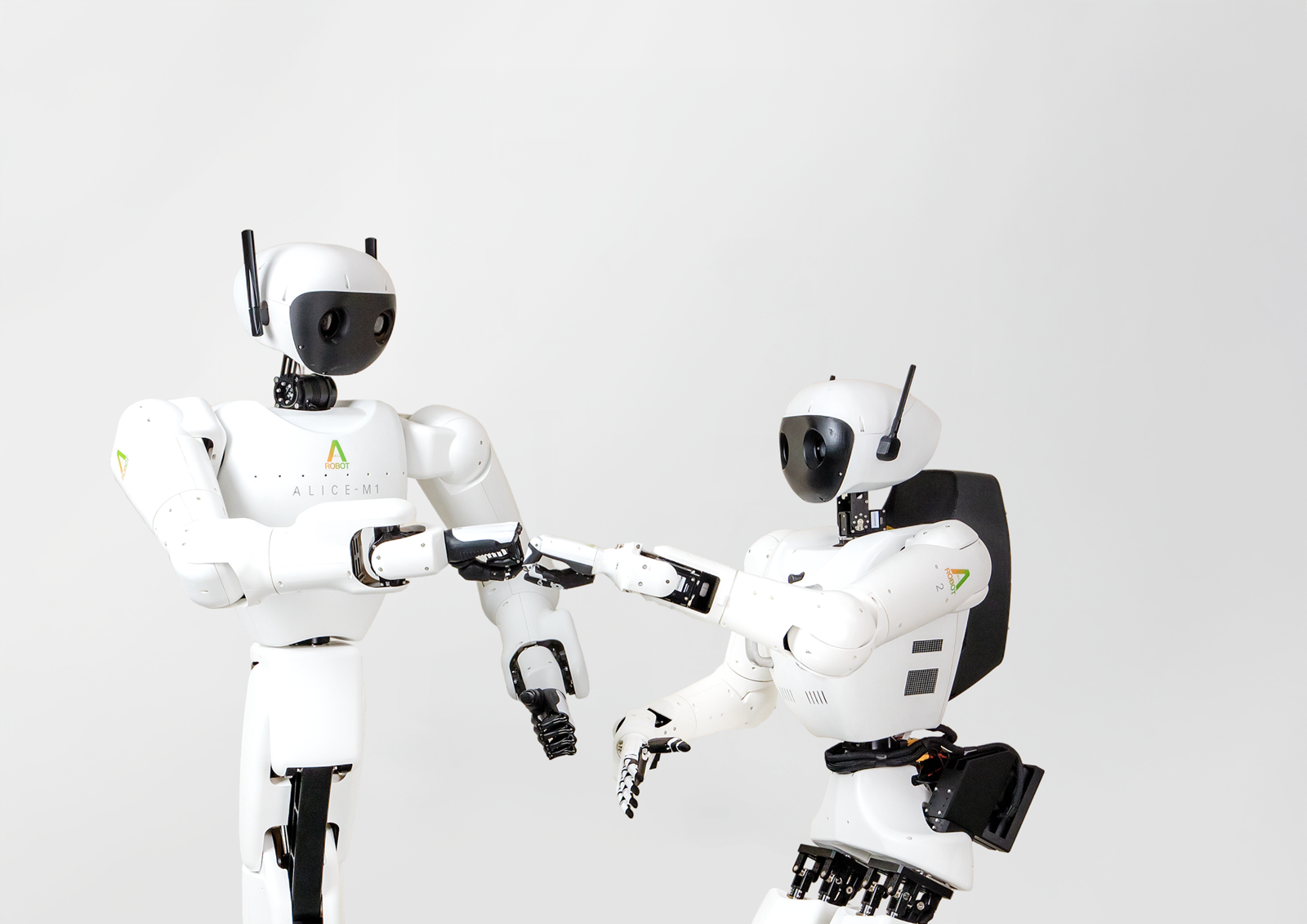 Humanoid robots 'Alice 4' and 'Alice M1'. Provided by Arobot