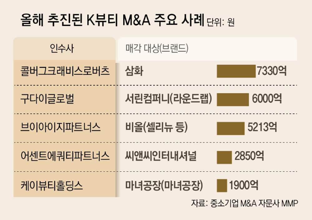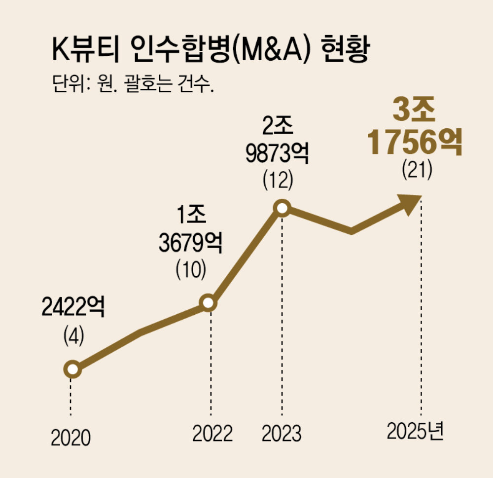 As the global popularity of K-beauty rises, the scale of mergers and acquisitions (M&A) in the domestic cosmetics sector has surpassed KRW 3 trillion this year. This marks the largest scale in eight years, influenced by the expansion of beauty industry M&A from brand-centric to areas such as packaging, beauty medical devices, and original design manufacturing (ODM).