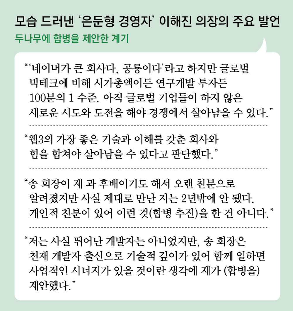 Following the resolution of the merger plan between Naver Financial and Dunamu by the three companies the previous day, Chairman Lee explained the background of the merger, stating, “To survive in the competition, we must make new attempts and challenges that global companies do not undertake,” and added, “We will consolidate the capabilities of both companies to preempt the future digital financial industry.”