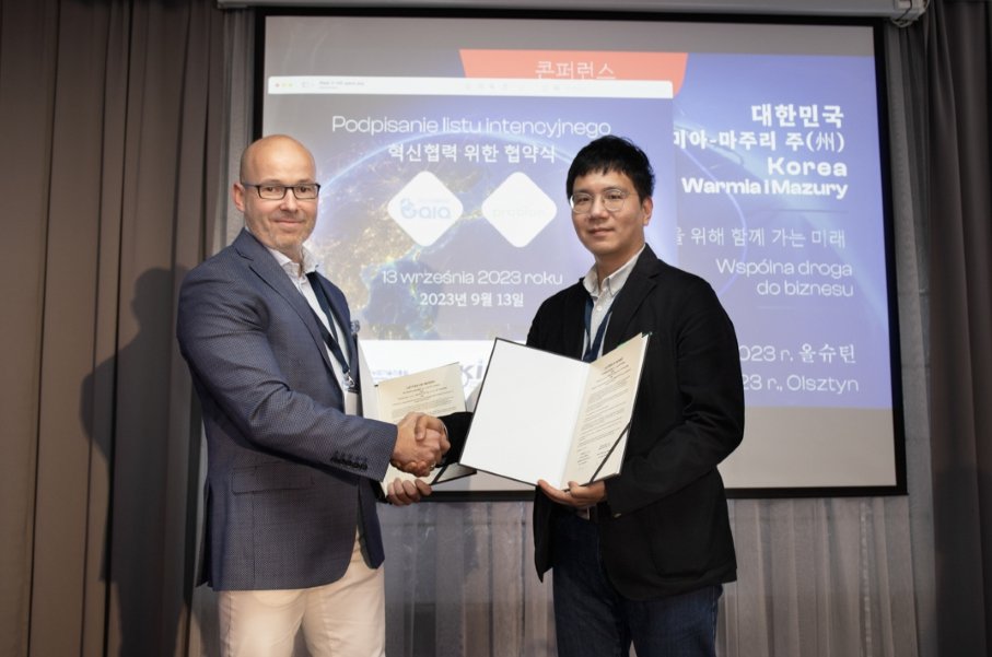 CEO Kim Hee-gyeom signing a ceremony with a Polish company in Warmia-Masuria (right) / Source=Kayabio