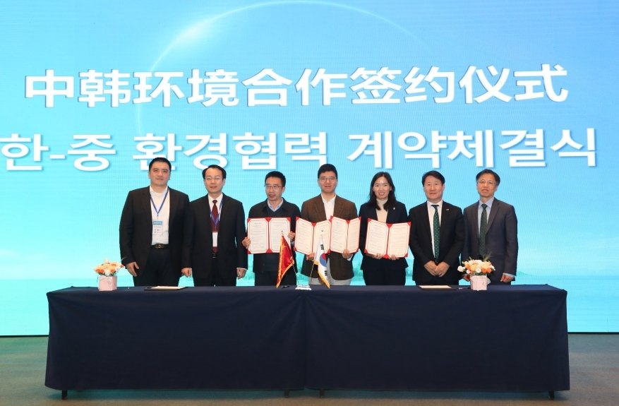 CEO Kim Hee-gyeom signing a ceremony with Shandong Environmental Protection Group (center) / Source=Kayabio