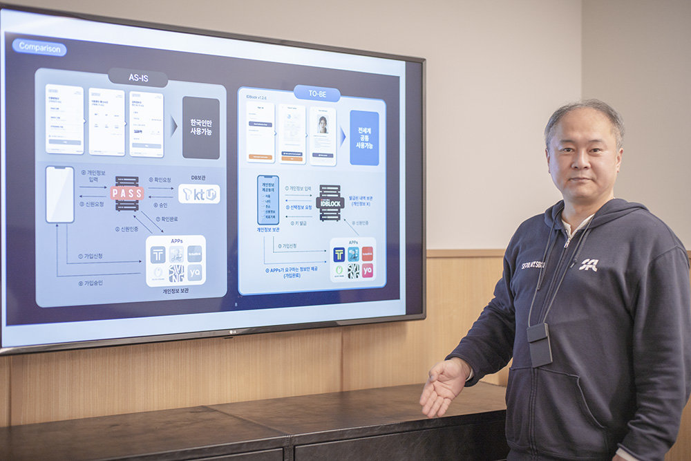 Jae-seol Kim explained that IDBlock will change the existing centralized personal information authentication process and enable borderless personal information authentication / Source=IT Donga