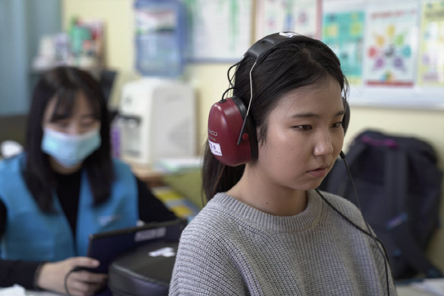Hearing loss screening being conducted for Mongolian adolescents. Photo provided by Raphael International