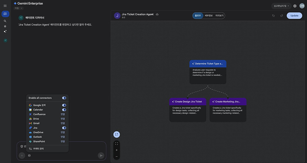 Screen for designing AI agents in Google Gemini Enterprise. It is now possible to build business process automation flows without coding. As a result, AI implementation strategy has become more important than coding itself / Source = Letther
