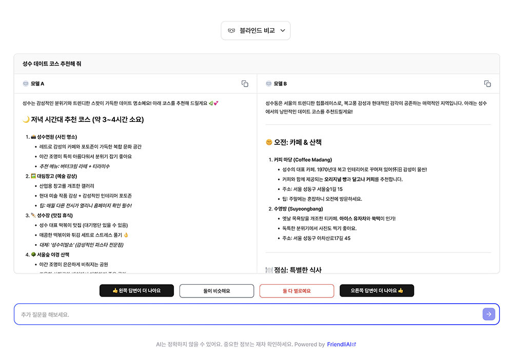 FriendliAI recently launched the ‘WABA’ service, a blind test-based AI evaluation platform / Source=FriendliAI