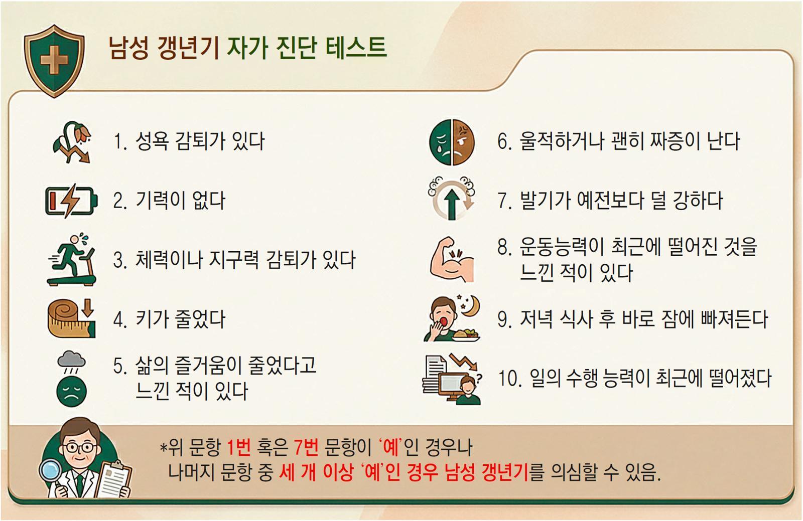 These are the recent changes experienced by 49-year-old Kim Hong-gi. When he shared his symptoms at a social gathering, similar concerns poured out. A variety of “word-of-mouth diagnoses” followed, including aging, depression, and hypothyroidism. One friend suggested the possibility of male menopause.