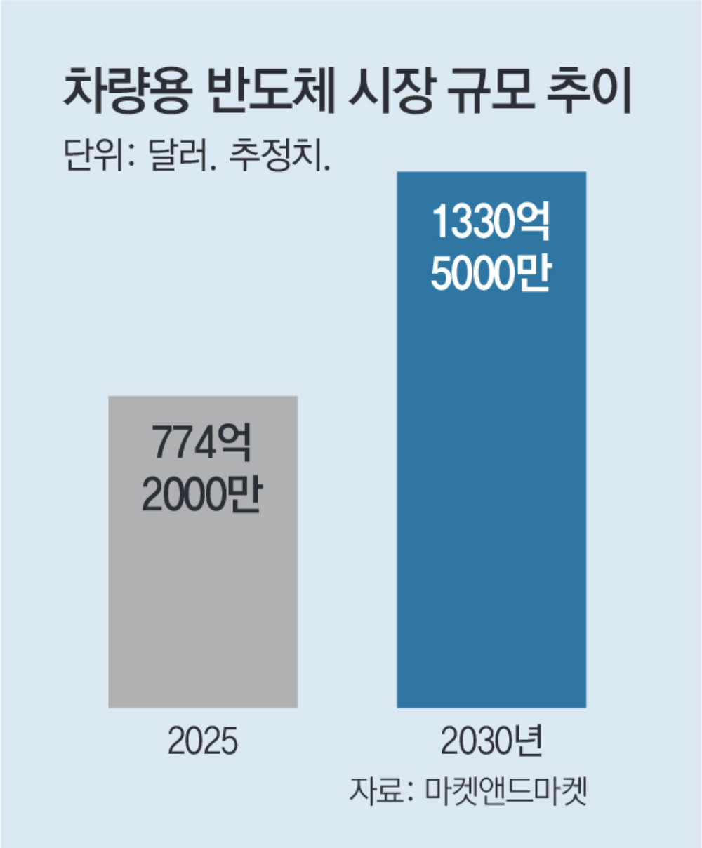 With the automotive semiconductor market set to grow, there is an outlook that Samsung Electronics’ System LSI and Foundry businesses will seek a rebound by securing new revenue streams. As the in-vehicle electronics business has recently expanded, the size of the automotive semiconductor market has also been increasing rapidly. Market research firm MarketsandMarkets forecasts that the global automotive semiconductor market will grow from USD 77.42 billion (about KRW 111,128.7 billion) this year to USD 133.05 billion (about KRW 190,980 billion) in 2030.