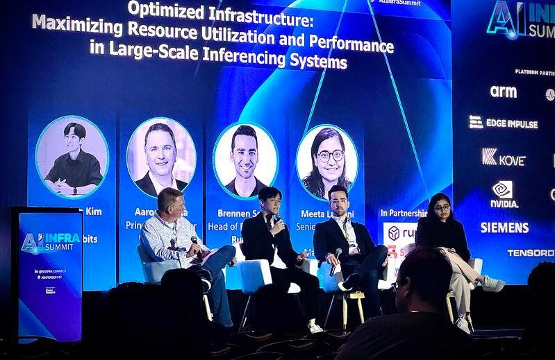 Squeezebits CEO Kim Hyoung-joon speaks as a panelist in a session on optimizing the performance of large inference models at “AI Infrastructure Summit 2025,” held in September last year at the Santa Clara Convention Center in California. Provided by Squeezebits