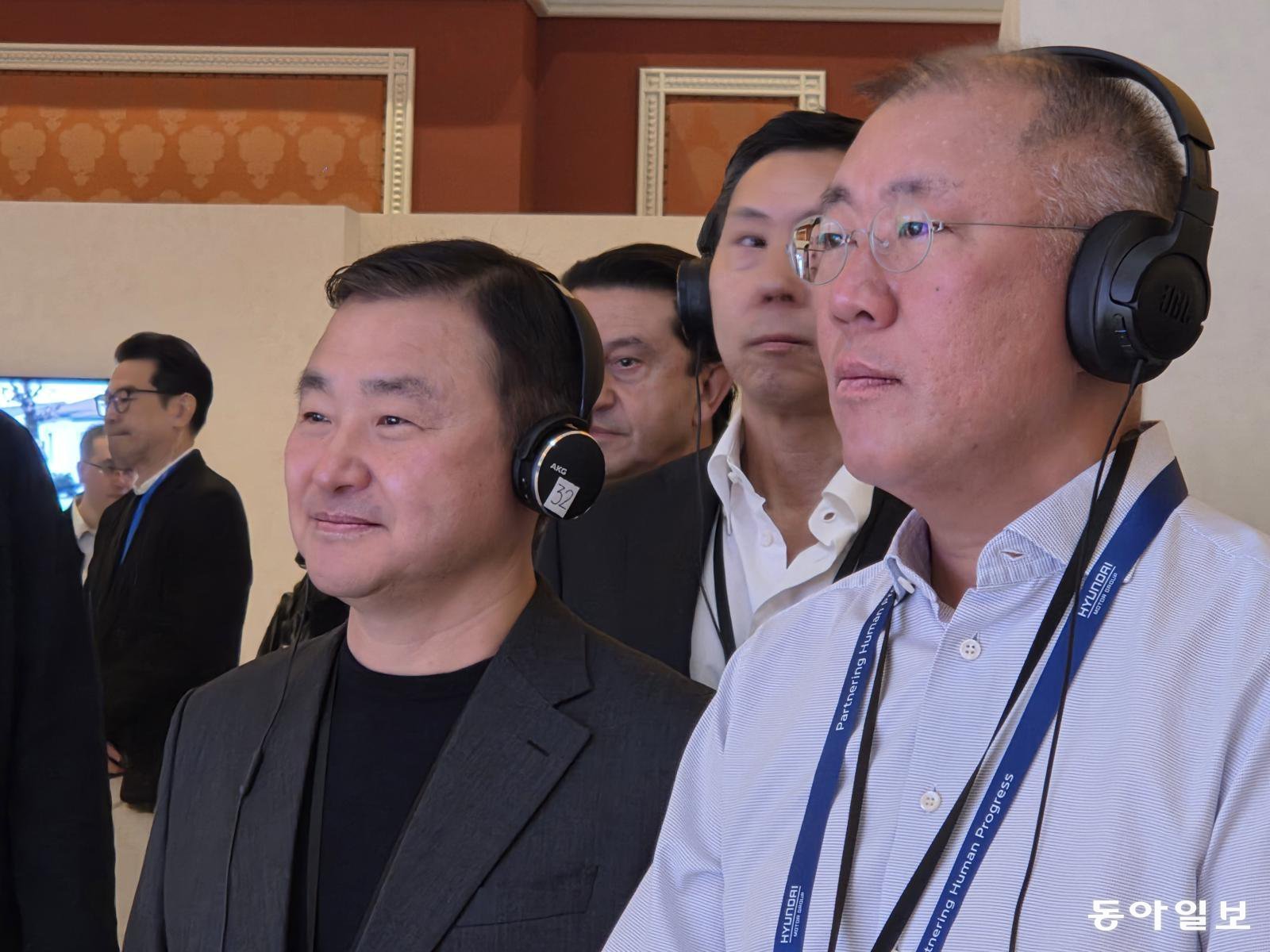 Hyundai Motor Group Chairman Chung Euisun visits Samsung Electronics’ integrated booth at the Wynn hotel in Las Vegas on the 6th (local time). Las Vegas = Reporter Lee Min-a omg@donga.com