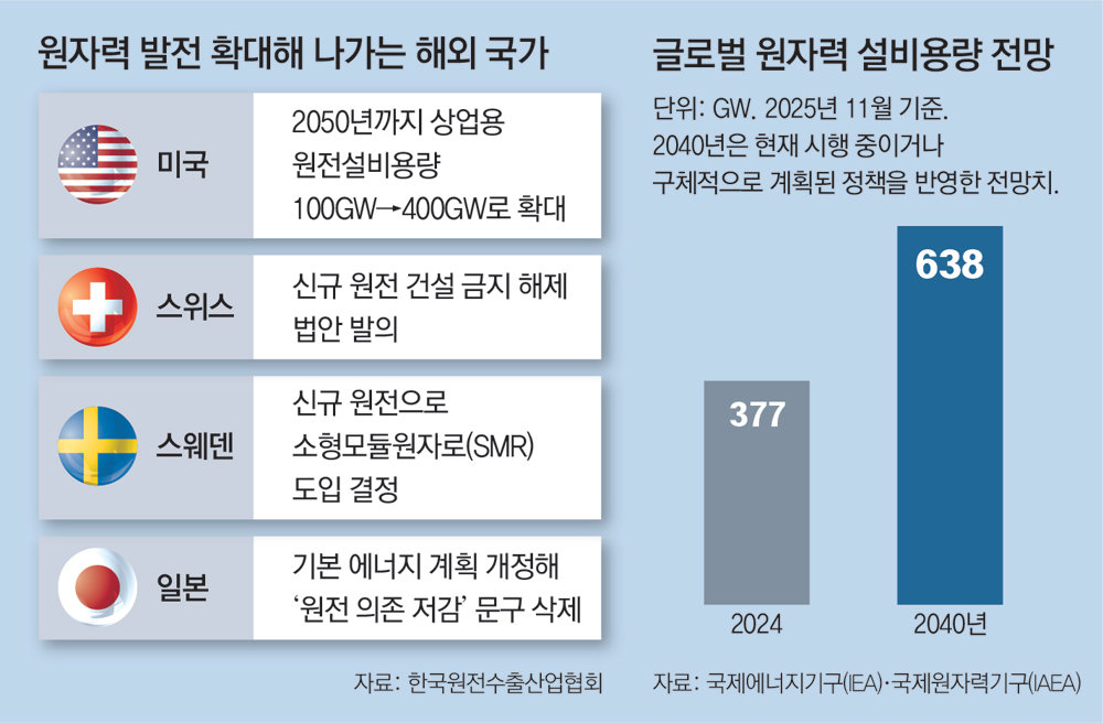 According to the Korea Nuclear Export Industry Association, the International Energy Agency (IEA), in its “World Energy Outlook 2025” released in November last year, projected that global nuclear power capacity will expand to 638GW by 2040. This represents an increase of more than 70% compared with the current capacity of 377GW compiled by the International Atomic Energy Agency (IAEA). The projection assumes that the plans currently being implemented or specifically decided by each country will proceed as scheduled.