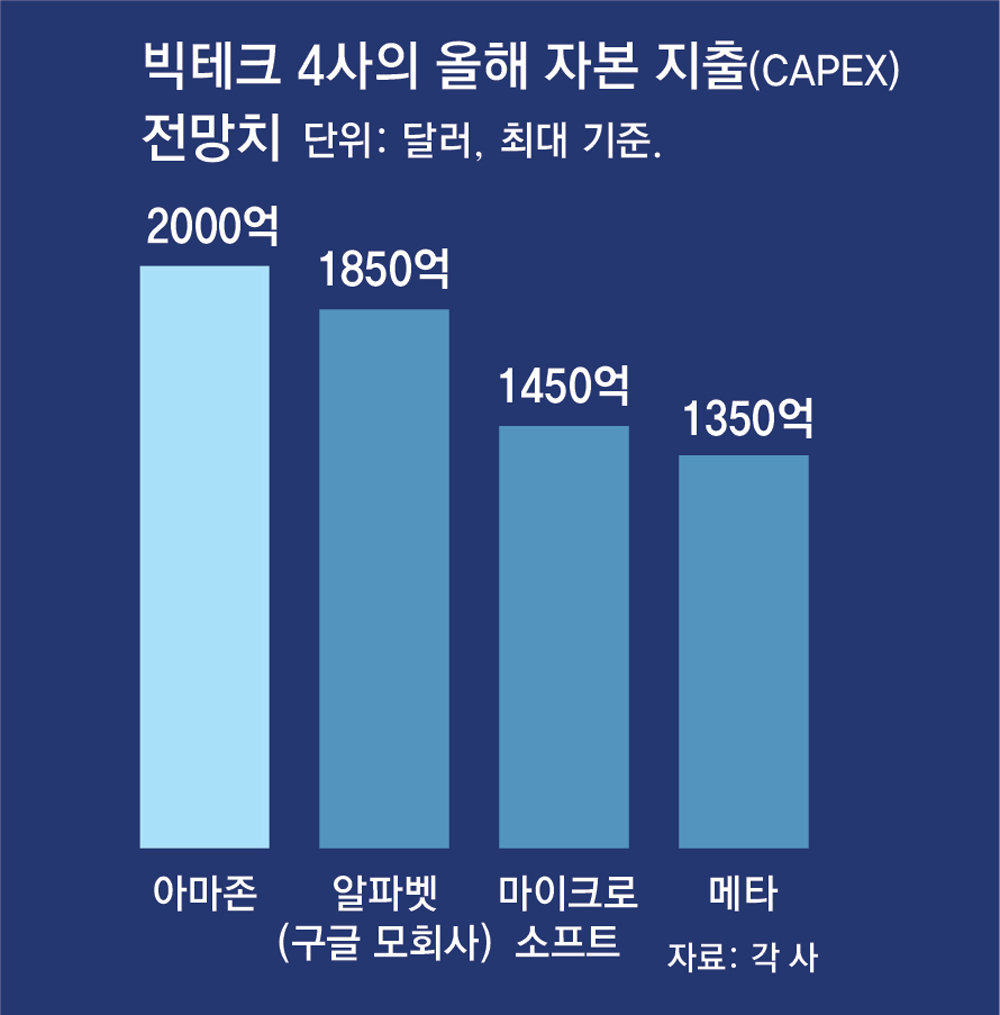 Morgan Stanley projected that big tech companies will borrow USD 400 billion (about KRW 584 trillion) this year. In the capital markets, concerns are emerging that the debt of AI-focused big tech firms could weigh on the credit markets. Investment by the four major U.S. big tech companies—Amazon, Alphabet, Microsoft and Meta—is forecast to reach USD 650 billion this year.