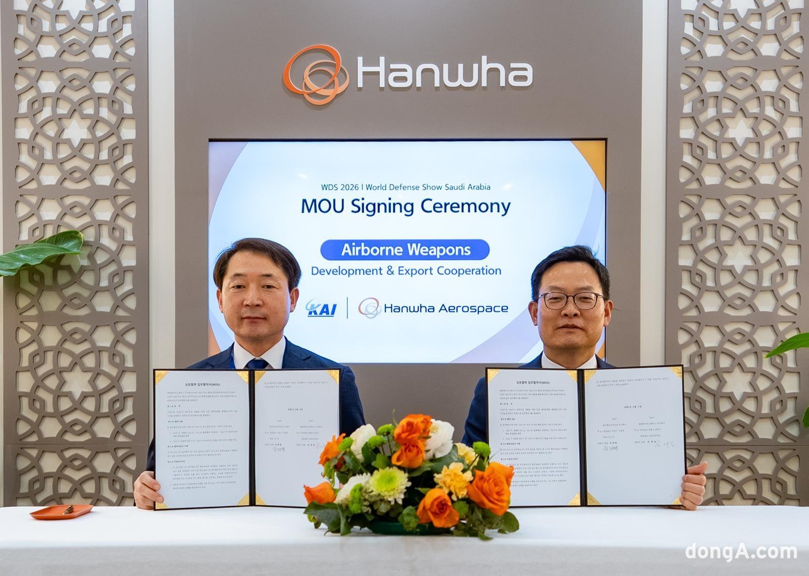 Hanwha Aerospace announced on the 10th that it signed a “Memorandum of Understanding (MOU) on Cooperation in the Aircraft Weapons Program” with KAI on the 9th (local time) at the 3rd World Defense Show (WDS) held in Riyadh, Saudi Arabia. The MOU signing ceremony, held at Hanwha’s booth, was attended by key officials including Son Jae-il, CEO of Hanwha Aerospace, and Cha Byung-jae, CEO of KAI.
