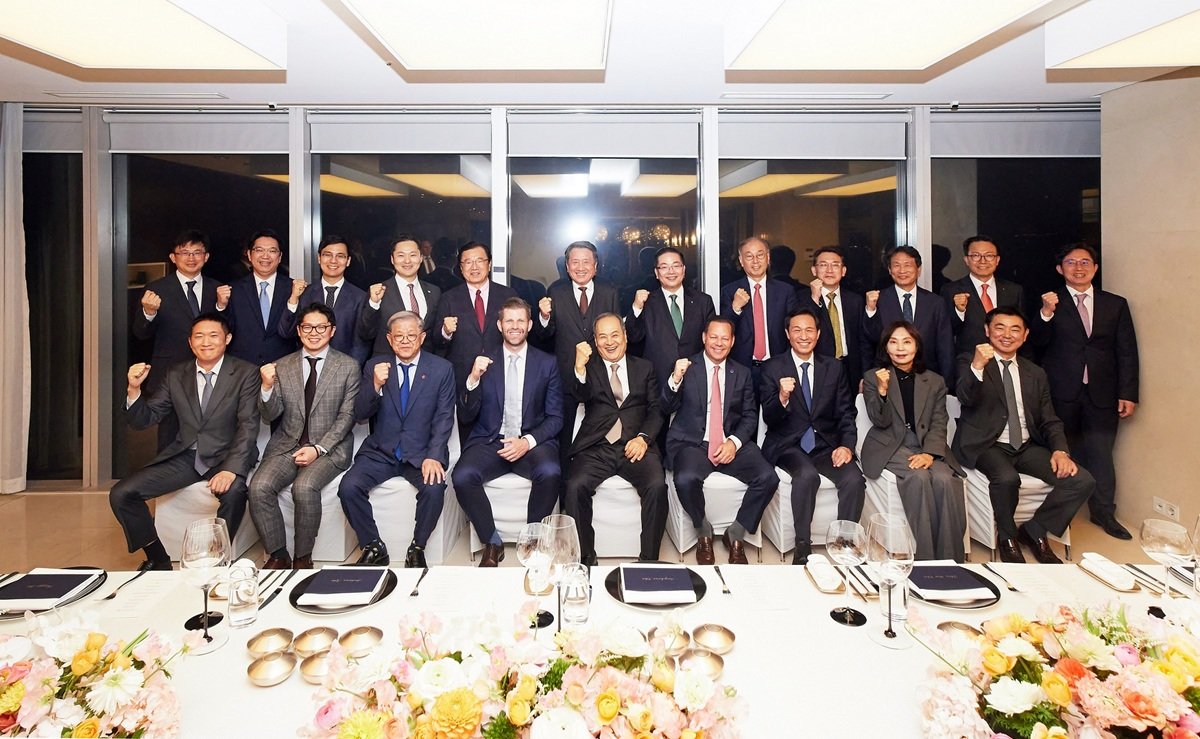 At the dinner reception hosted by Base Group on the 10th for Executive Vice President Eric Trump, leading figures from Korea’s political and economic circles attended, including Woo Sang-ho, former Senior Presidential Secretary for Political Affairs at the Blue House; Lee Hyeon-jae, Mayor of Hanam; Choi Shin-won, former Chairman of SK Networks; Choi Sung-hwan, President and Head of Business at SK Networks; Kim Young-sik, CEO of SK ecoplant; Lee Ho-sung, CEO of Hana Bank; and Lee Jun-pyo, CEO of SBVA (formerly SoftBank Ventures). They jointly discussed cooperation measures to expand private-sector economic exchanges between the two countries.