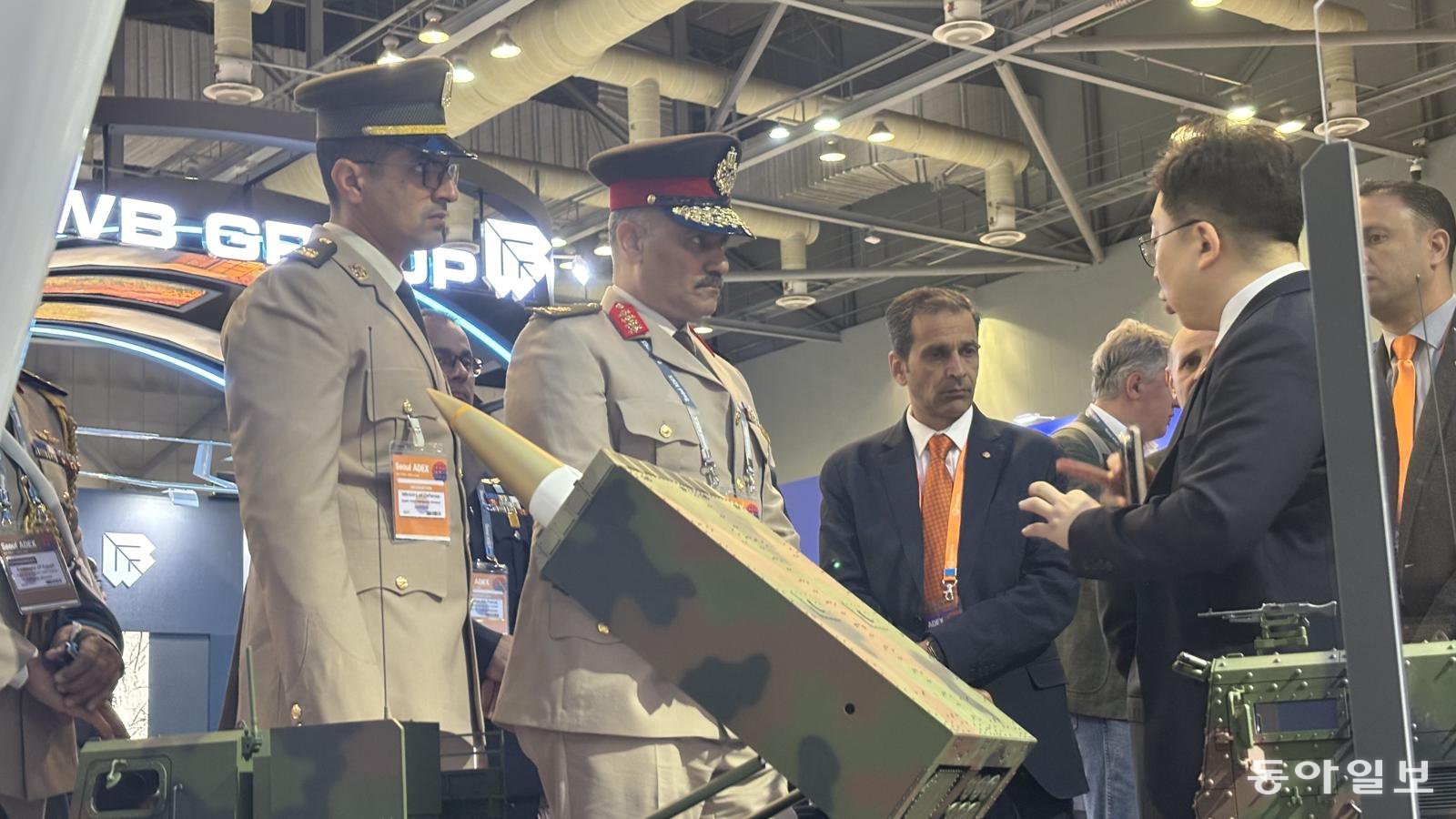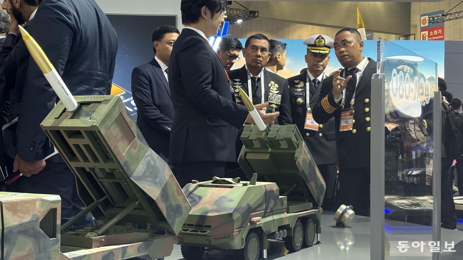 Following the 'Public Day' schedule, including the airshow (aerobatic flight) at Seoul Airport in Seongnam, Gyeonggi Province, from the 17th to the 19th, ADEX commenced its main professional visitor events on the 20th at the KINTEX exhibition center in Goyang, Gyeonggi Province. The exhibition hall was half foreign and half Korean, reflecting the recent popularity of 'K-Defense.' The booths of Korean defense companies were crowded with military and defense industry officials from various countries, who were busy moving between booths and listening to explanations.