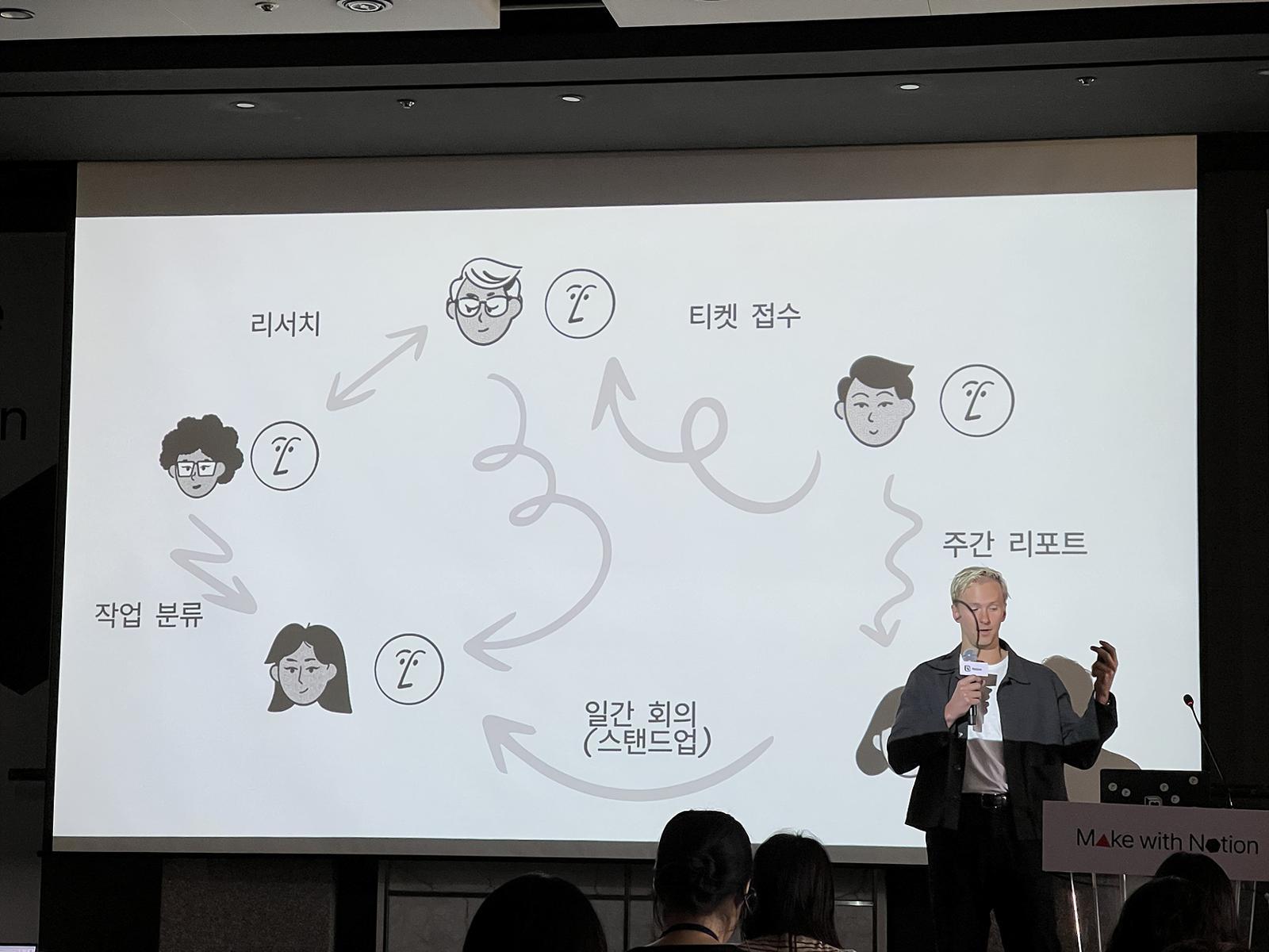 Park Dae-sung, head of Notion Korea, is giving a greeting.