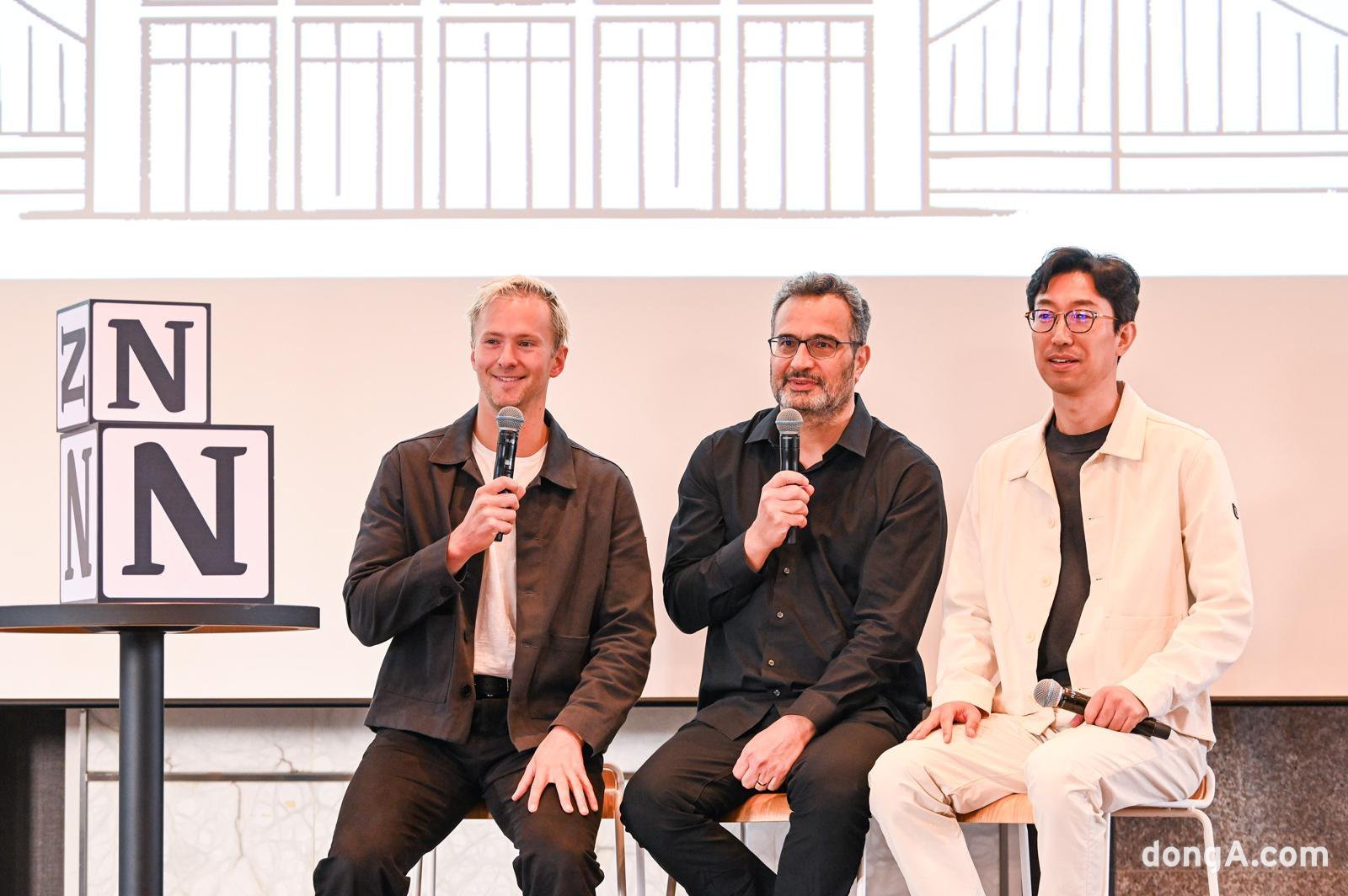 Notion held a press conference to introduce its latest product, Notion 3.0. (From left) John Hurley, Head of Product Marketing at Notion, Fuzzy Khosrowshahi, Notion CTO, Park Dae-sung, head of Notion Korea.