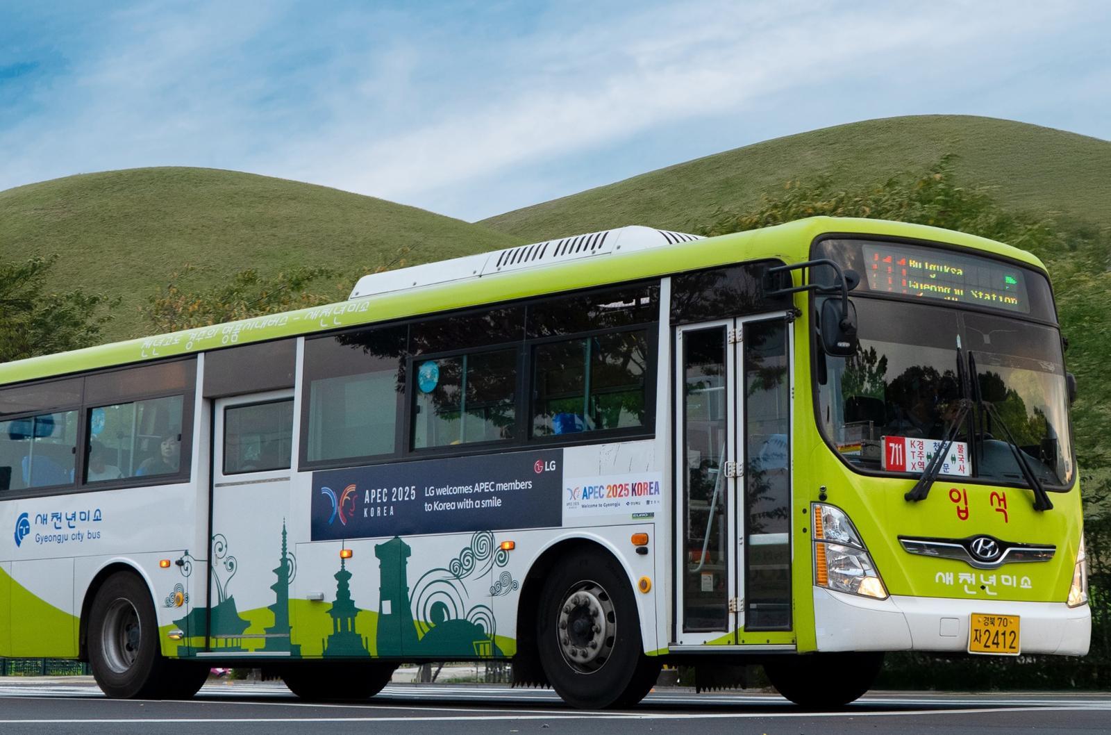 Since the 30th of last month, LG has been running APEC wrapping advertisements on 70 Gyeongju city buses. These buses, wrapped in advertisements, have been serving as APEC ambassadors, traveling throughout the city, including major Gyeongju landmarks such as Cheomseongdae, Cheonmachong, Hwangridan-gil, and Donggung Palace and Wolji Pond.