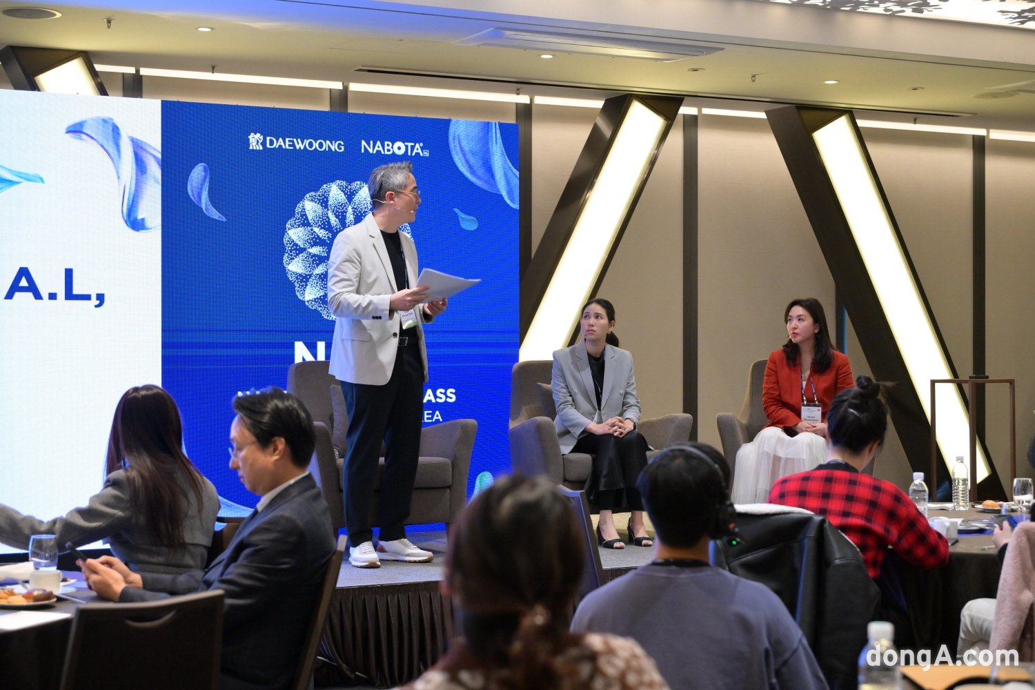 A panel discussion is being held during the Daewoong Pharmaceutical Nabota Master Class (NMC) lecture session.