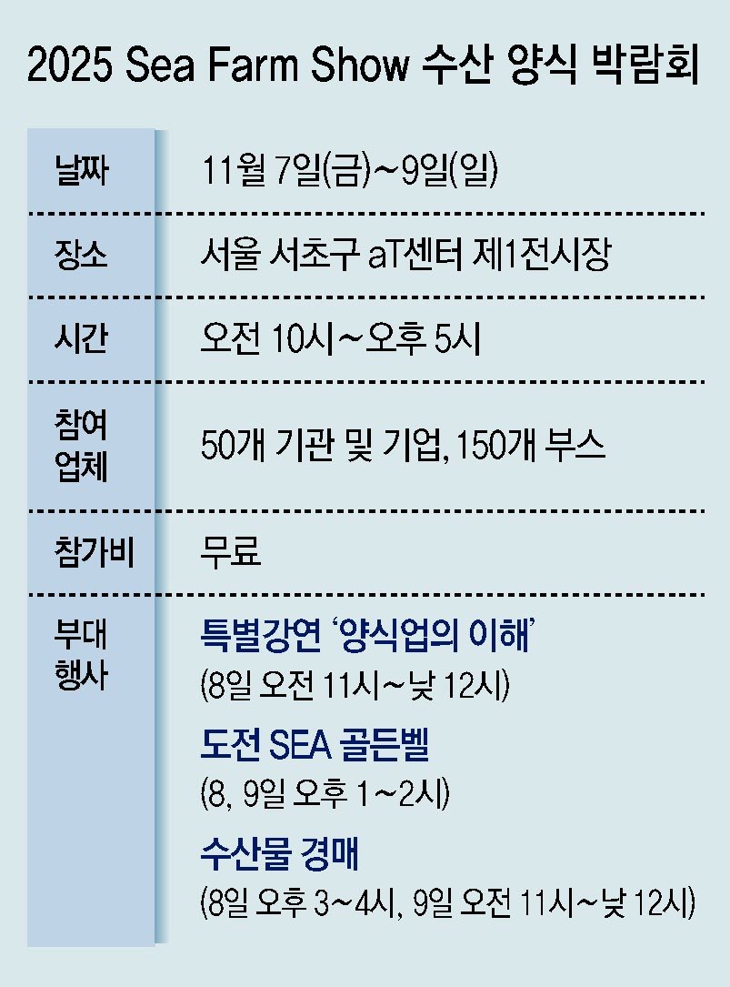 The '2025 Sea Farm Show', the largest marine aquaculture exhibition in the country, opened on the 7th at the aT Center in Seocho-gu, Seoul. Jointly hosted by Dong-A Ilbo, Channel A, and the Ministry of Oceans and Fisheries, the exhibition runs until the 9th under the theme 'The Future of Smart Aquaculture Opened by AI and Advanced Technology'. Local governments, public institutions, and companies have set up a total of 150 booths to showcase smart aquaculture technology utilizing artificial intelligence (AI). In particular, they introduced dishes using domestic seafood and conducted experiential events to enhance visitor satisfaction.