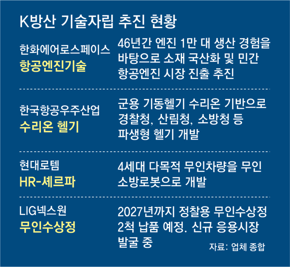 ● Evolving K-Unmanned Systems, Developing Aviation EnginesWhile Surion has pioneered the skies, unmanned systems are opening new breakthroughs on land and sea. Hyundai Rotem is developing an unmanned firefighting robot specialized for fire suppression based on the fourth-generation multipurpose unmanned vehicle 'HR-Sherpa', which the National Fire Agency is preparing to deploy on-site starting this month. LIG Nex1's 'Sea Sword' unmanned surface vessel has been accumulating independent technology since 2015 and signed a contract worth KRW 39.9 billion with the Defense Acquisition Program Administration in December 2024. It plans to deliver two reconnaissance unmanned surface vessels by 2027, attracting attention for its potential use in various civilian fields such as marine environment monitoring and maritime rescue.