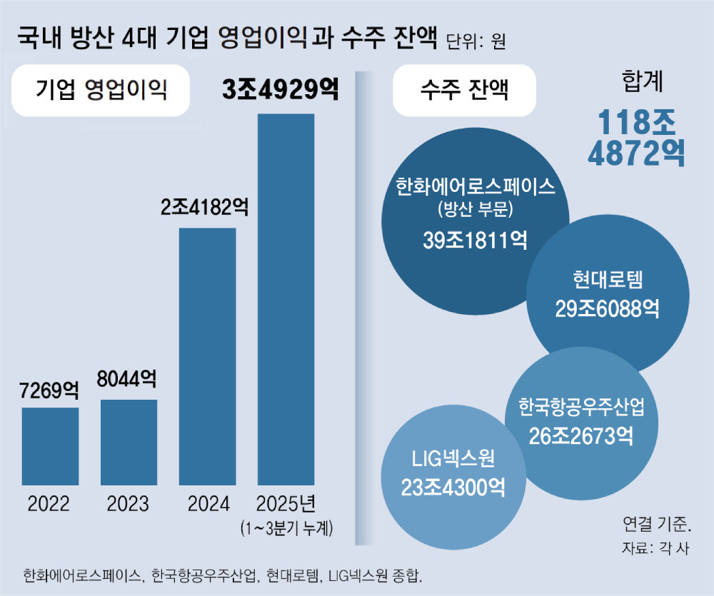 The annual operating profit of the four major domestic defense companies is expected to exceed KRW 4 trillion this year. By the third quarter (July-September), the combined operating profit has already surpassed last year's annual performance by over KRW 1 trillion, reaching KRW 3.4929 trillion.