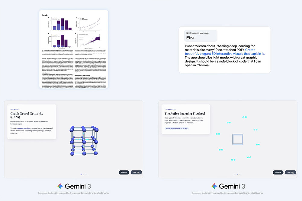 Google aims to maintain its influence in the AI-based next-generation search engine market through Gemini 3. The AI mode provided with basic searches applies a generative UI that instantly configures a visual layout according to the user's search intent. For example, if searching for images, it provides an image-centric layout; if analyzing papers or focusing on text, it offers a corresponding screen configuration.